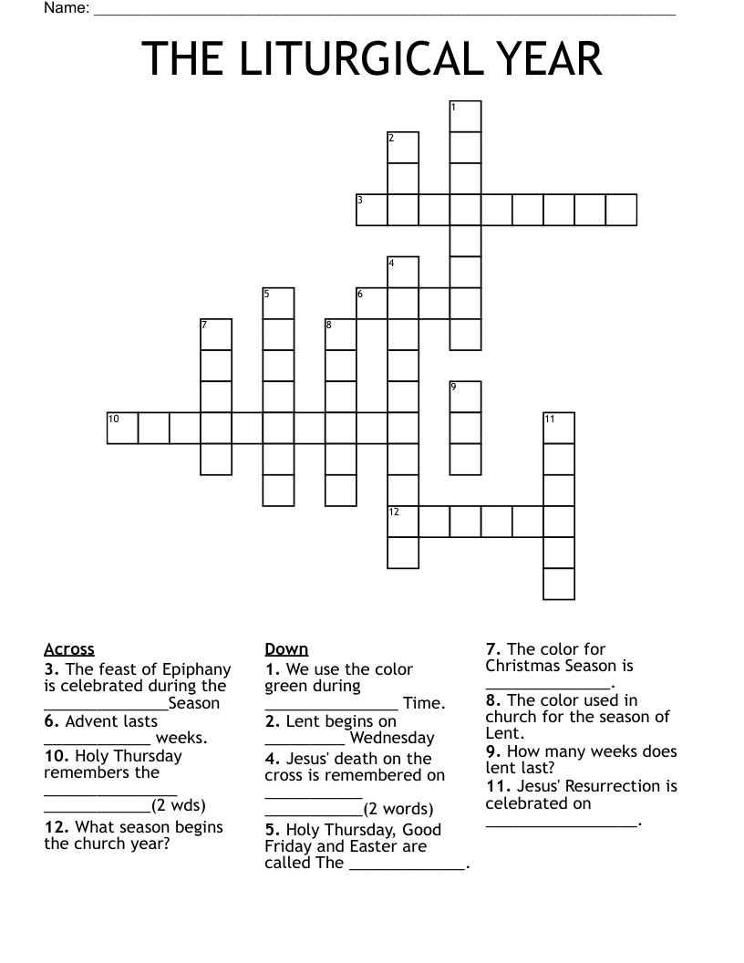 The Liturgical Year Crossword – Wordmint within Advent Christmas and Epiphany Crossword Puzzles Answers