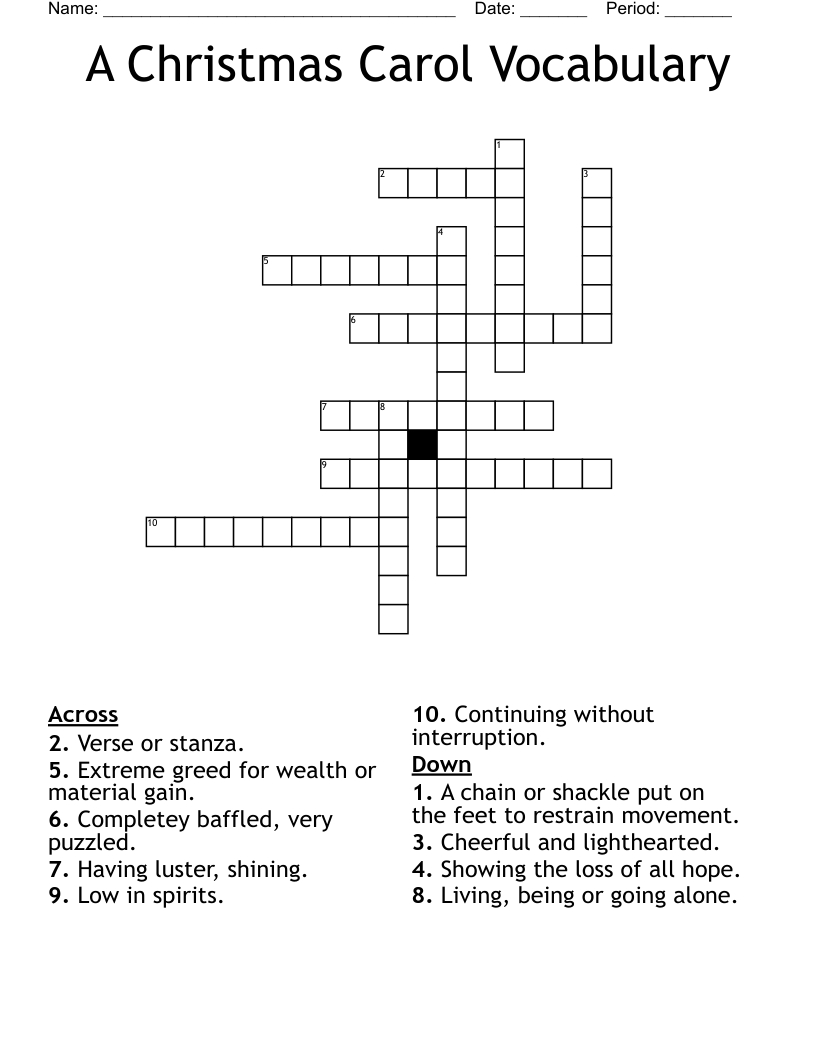 Christmas Carol Literary Crossword Puzzles Answer Key Gallery