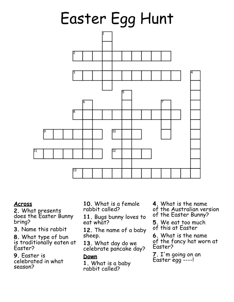 Easter Crossword Puzzles:
