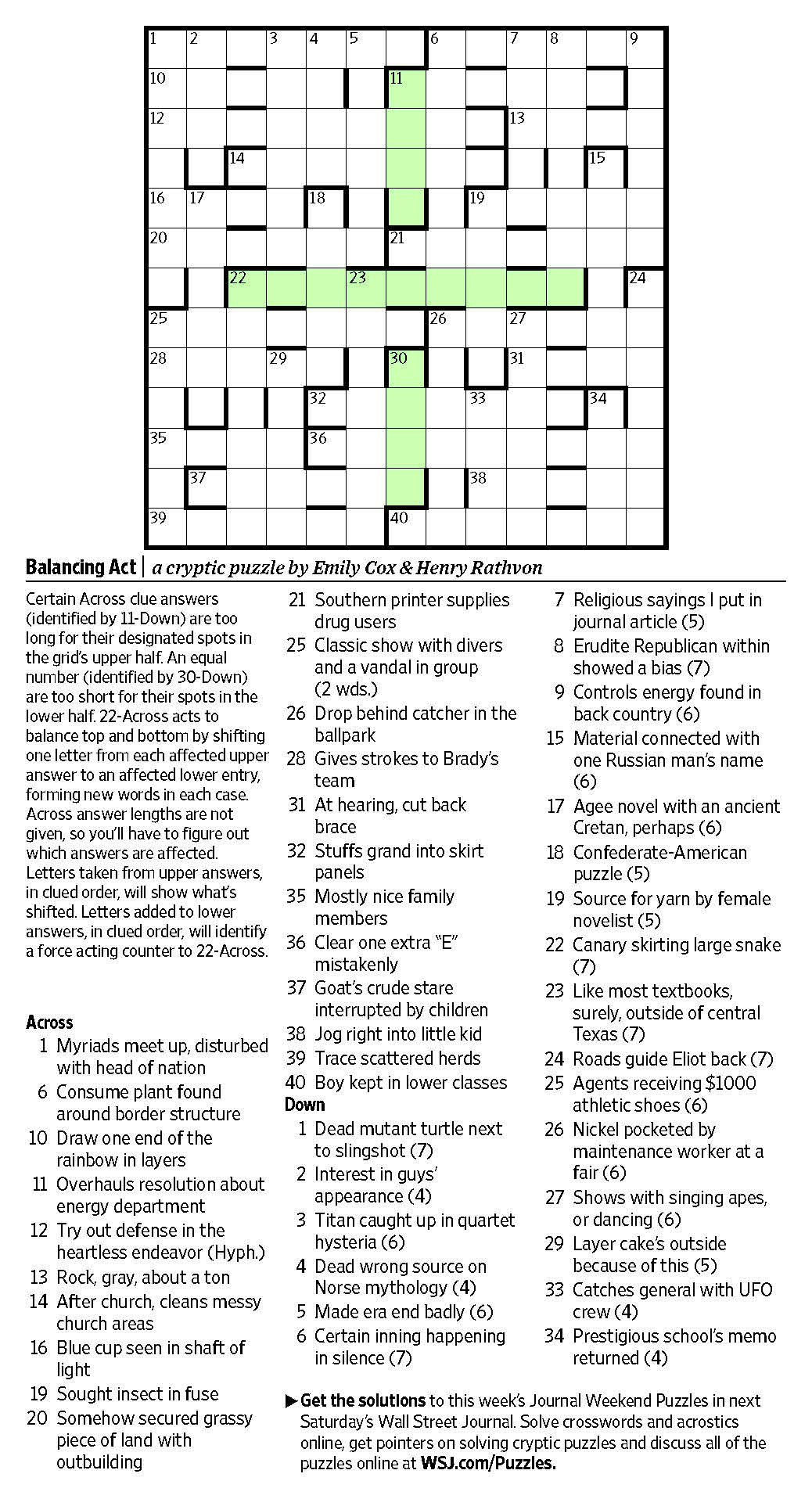 Wall Street Journal Crossword Puzzle Printable Printable Crossword